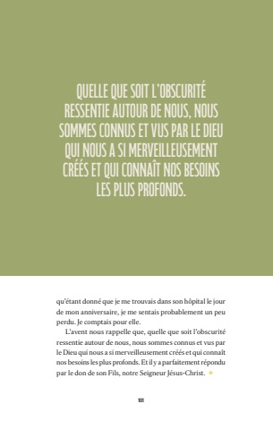 101qu%u2019%u00e9tant donn%u00e9 que je me trouvais dans son h%u00f4pital le jour de mon anniversaire, je me sentais probablement un peu perdu. Je comptais pour elle. L%u2019avent nous rappelle que, quelle que soit l%u2019obscurit%u00e9 ressentie autour de nous, nous sommes connus et vus par le Dieu qui nous a si merveilleusement cr%u00e9%u00e9s et qui conna%u00eet nos besoins les plus profonds. Et il y a parfaitement r%u00e9pondu par le don de son Fils, notre Seigneur J%u00e9sus-Christ. quelle que soit l%u2019obscurit%u00e9 ressentie autour de nous, nous sommes connus et vus par le Dieu qui nous a si merveilleusement cr%u00e9%u00e9s et qui conna%u00eet nos besoins les plus profonds.