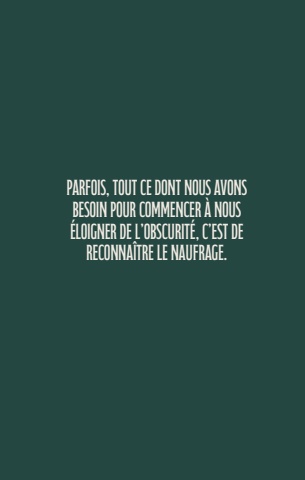 29Parfois, tout ce dont nous avons besoin pour commencer %u00e0 nous %u00e9loigner de l%u2019obscurit%u00e9, c%u2019est de reconna%u00eetre le naufrage.