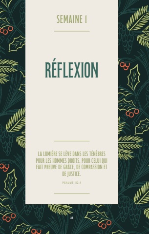 38La lumi%u00e8re se l%u00e8ve dans les t%u00e9n%u00e8bres pour les hommes droits, pour celui qui fait preuve de gr%u00e2ce, de compassion et de justice. PSAUME 112.4SEMAINE 1R%u00e9flexion