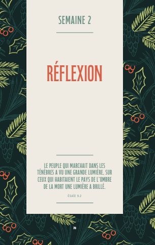 70Le peuple qui marchait dans les t%u00e9n%u00e8bres a vu une grande lumi%u00e8re, sur ceux qui habitaient le pays de l%u2019ombre de la mort une lumi%u00e8re a brill%u00e9.%u00c9SA%u00cfE 9.2SEMAINE 2R%u00e9flexion