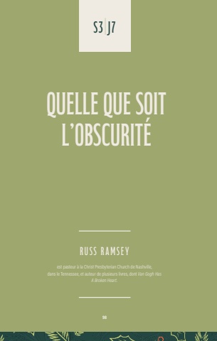 98R u s s R a m s e y est pasteur %u00e0 la Christ Presbyterian Church de Nashville,dans le Tennessee, et auteur de plusieurs livres, dont Van Gogh HasA Broken Heart. S3|J7Quelle que soitl%u2019obscurit%u00e9